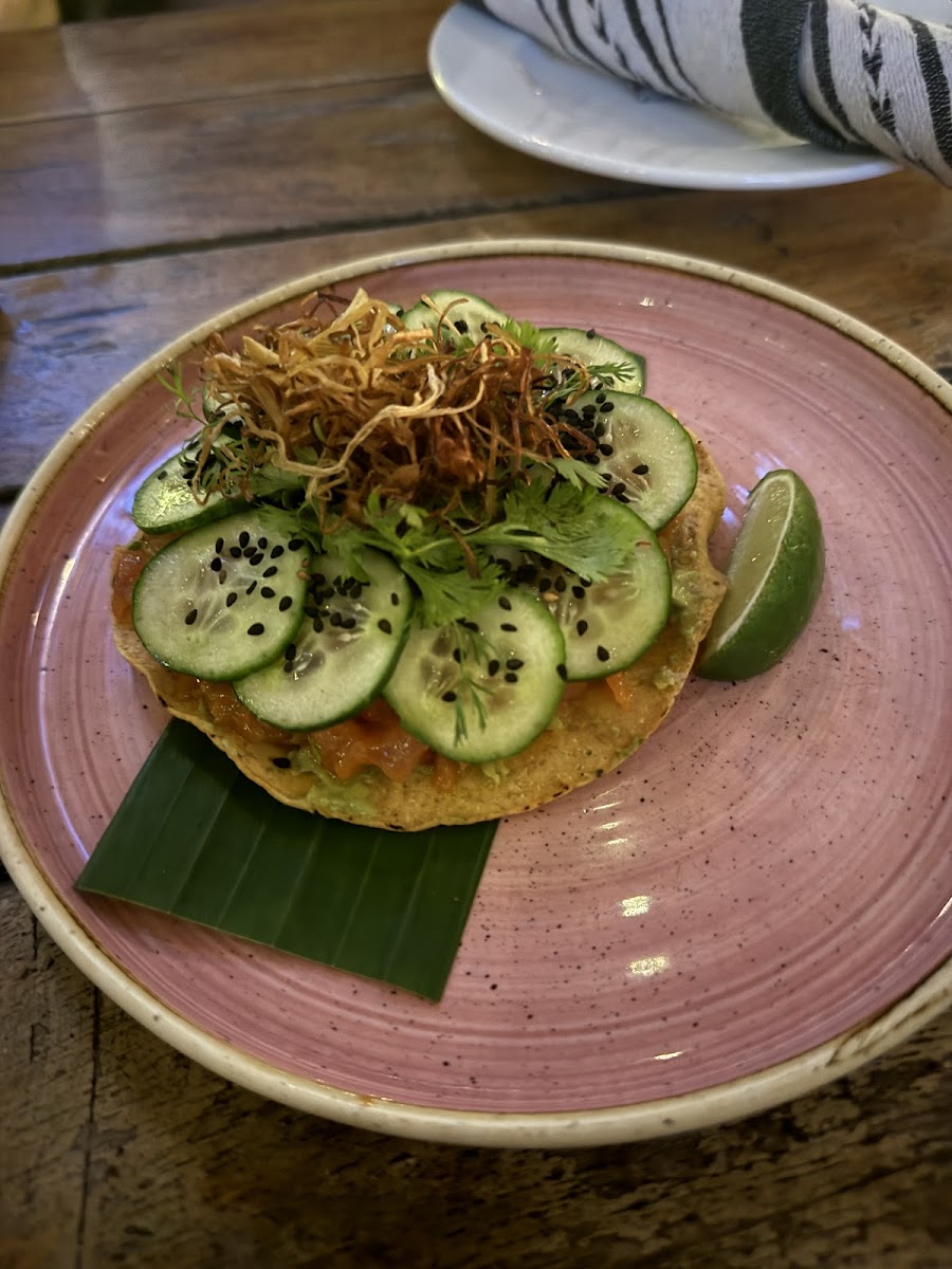 The atmosphere here changes with the day. Early evenings lean into a moody yet inviting jungle vibe, where you can settle in with mezcal cocktails or a refreshing young coconut aguachile. The combination of ambient lights filtering through the trees and occasional live performers or dancers creates a pulse that gently builds until the DJs take over later, transforming the whole place into a party with house music setting the tone. This ebb and flow makes Gitano ideal for both an intimate dinner and a dynamic night out.